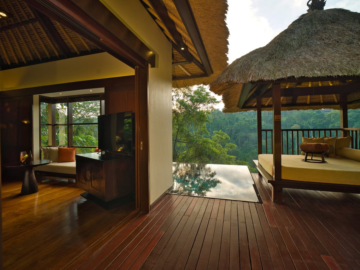 L’Hôtel Hanging Garden propose une gamme de villas somptueuses, dont certaines disposent de piscines privées à débordement offrant des vues à couper le souffle sur la vallée et la jungle environnante. Chaque villa est conçue avec un soin méticuleux, combinant des éléments traditionnels balinais et des équipements modernes de luxe.